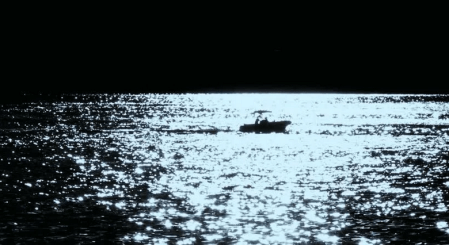 You keep looking back at the boat, back to the old man. You barely hear Ralph. His voice is tin. The hills blur past like the walls of a tunnel. The sky is dark purple, almost black, with the faintest hint of dawn ahead.